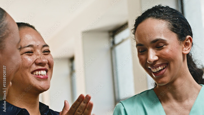 Diverse Team of Medical Professionals Sharing a Lighthearted Moment