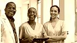 Smiling Multicultural Healthcare Professionals Collaborating in a Bright Medical Facility Hallway