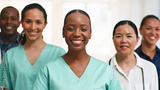 Diverse Group of Medical Professionals Smiling in a Healthcare Environment