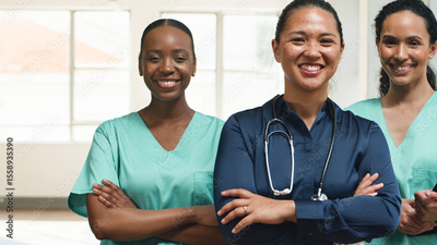 Group of Cheerful Healthcare Professionals in a Bright Professional Environment