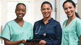 Healthcare Professionals Smiling Together in a Modern Medical Facility