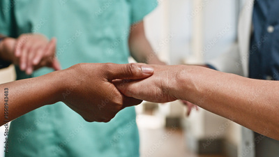 Close-Up of Healthcare Professionals Offering Supportive Handholding in Medical Setting