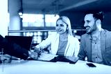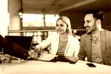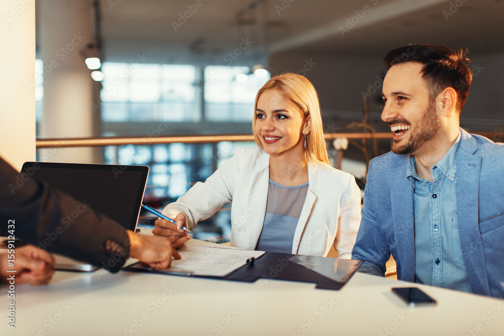 Young business couple signing a contract