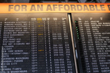 Main hall European airport main hall with black vintage mechanical flight information display board, flight arrivals and departures board European Airport, Germany, Frankfurt