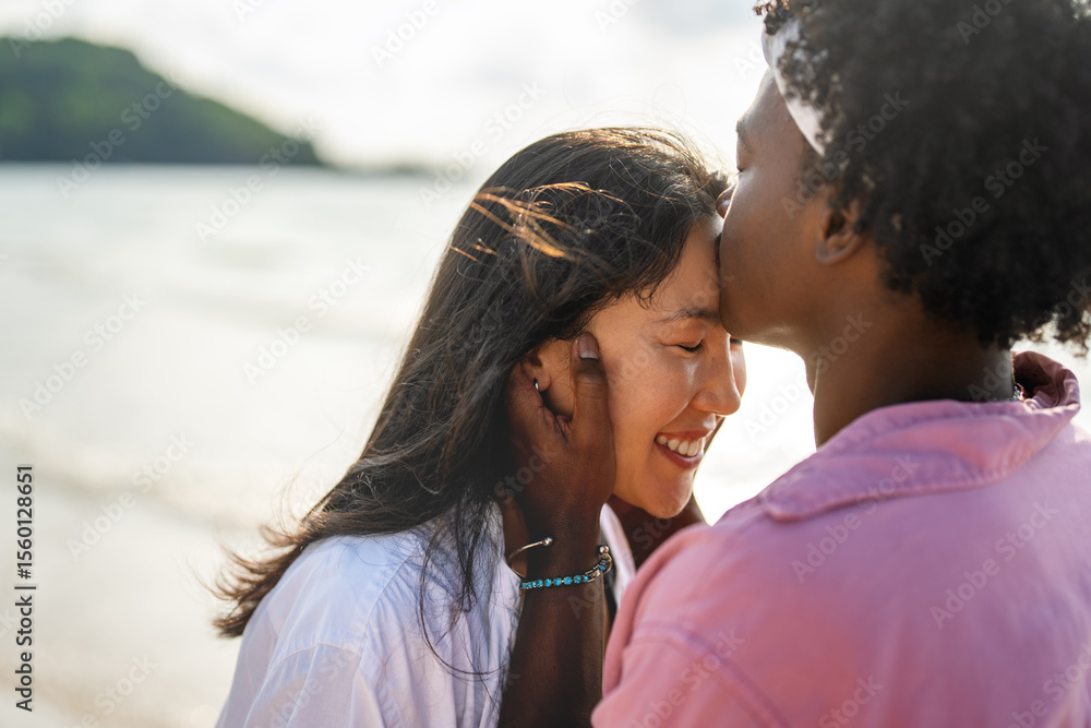Pure happiness. A young diverse, multiethnic couple enjoys every moment of their tropical getaway