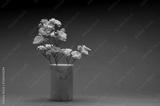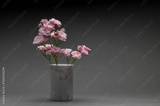 light pink roses in a marble mug on a graduated grey and black background, spectacular still life photography, simple subject, eye-catching elements