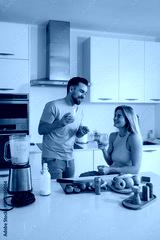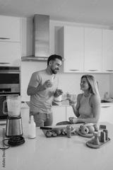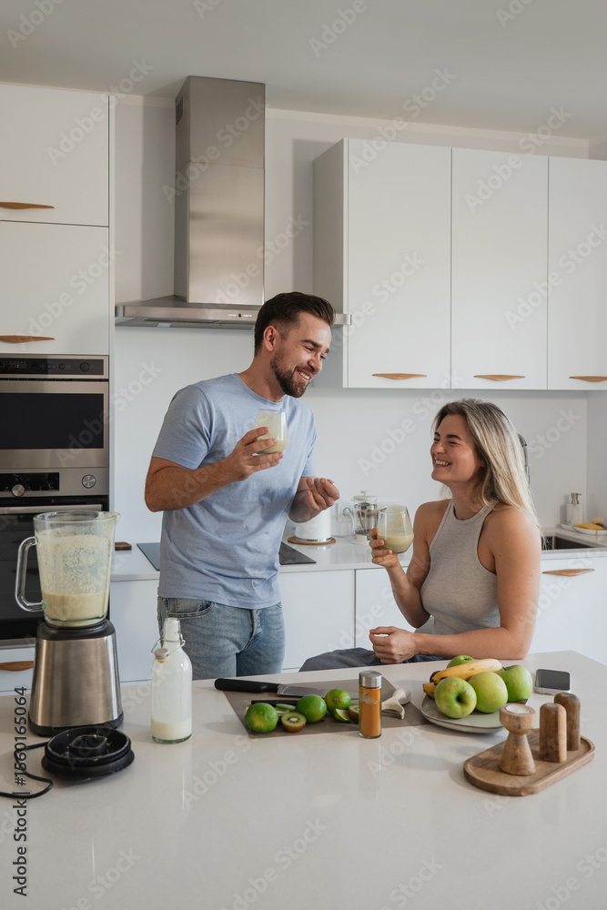 Couple Enjoying Homemade Smoothie Together in Modern Kitchen