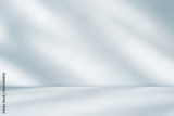 Empty white and soft blue shadow light overlay wall Room interiors studio concrete backdrop and floor cement shelf, well editing montage display products and text present on free space grey background