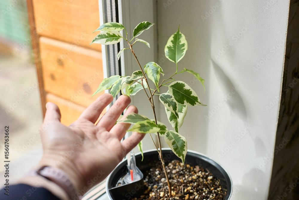 Growing Ficus Plant Reaches Toward A Helping Human Hand
