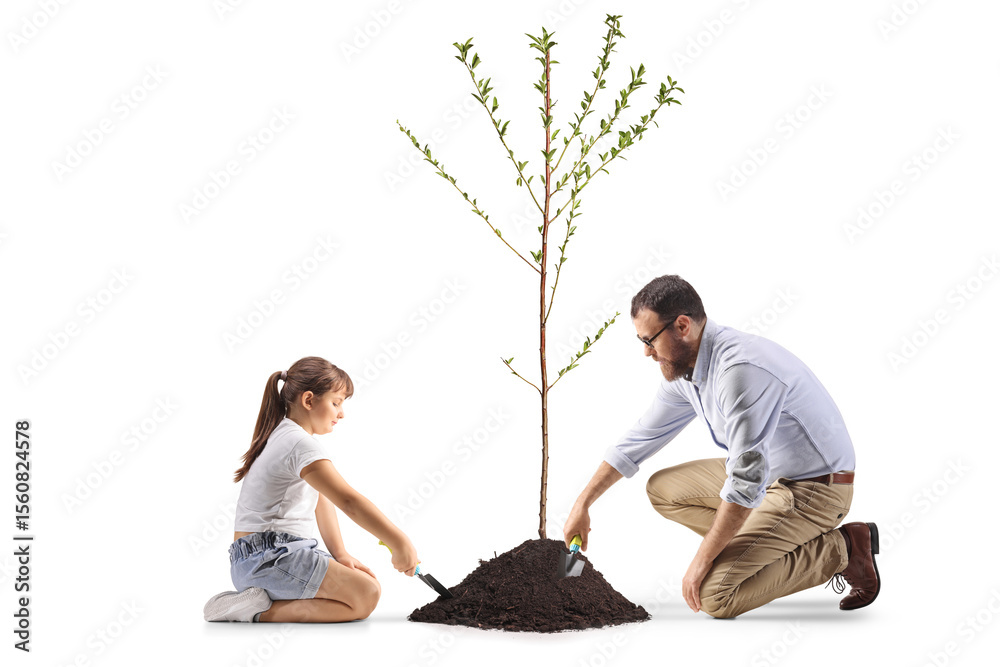 Father and daughter planting a tree
