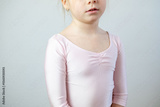 Five year old girl in ballet leotard, standing in pose, learning dance, early ballet class, innocence, Preschool girl in balletwear, early dance training, childhood moment