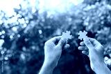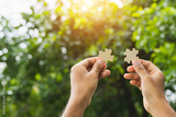 Connect jigsaw pieces to create network connection silhouette sunset, Business concept.