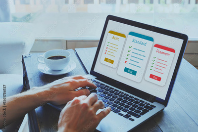subscription plan for online service, SaaS concept software as a service, man choosing online education course, buy streaming access