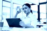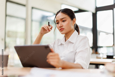 Young stressed caucasian businessasian woman working in the office. Businessman thinking too much work concept in the office.Tired, stressed headaches a long time Office syndrome concept.