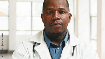 Confident Doctor Standing in Bright Clinic Wearing Professional Attire