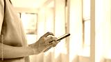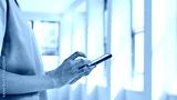 Medical Professional Utilizing Smartphone in Well-Lit Modern Interior