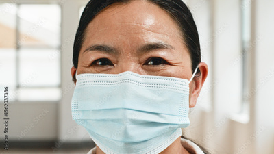 Smiling Healthcare Worker in Medical Mask in Light Indoor Setting