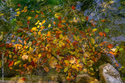 Yellow autumn maple leaves. Sunny autumn day. Fall in nature. Natural autumn fall background. Golden season. Bright orange and red leaf colors. Maple leaves in autumn sunny day.