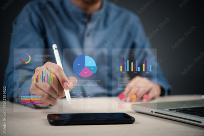 Business Data Analysis and Charts Digital Technology. Concept Strategy Growth Insights Performance Financial Investment Management Solutions Planning Economy Innovation Intelligence Corporate Success