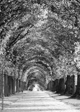 An Endless Journey Through a Vibrant Alley Glowing with green, Colorful Foliage