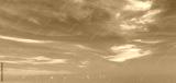 Panorama of cloud clear sky background for summer vacation concept at ocean and summer sea water with sunlight of beautiful cloudy