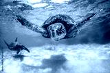An endangered Hawaiian Green Sea Turtle cruises in the warm waters of the Pacific Ocean in Hawaii.