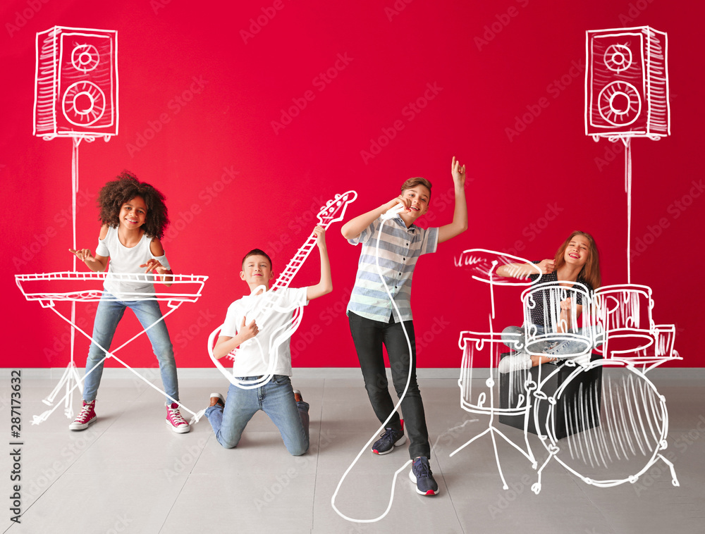 Road in the middle of the forest , trees with red and orange leaves , Beautiful landscape view from flying drone in Nature