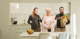 Elderly woman with a young man and woman