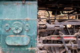 Steam locomotive wheels and mechanics closeup