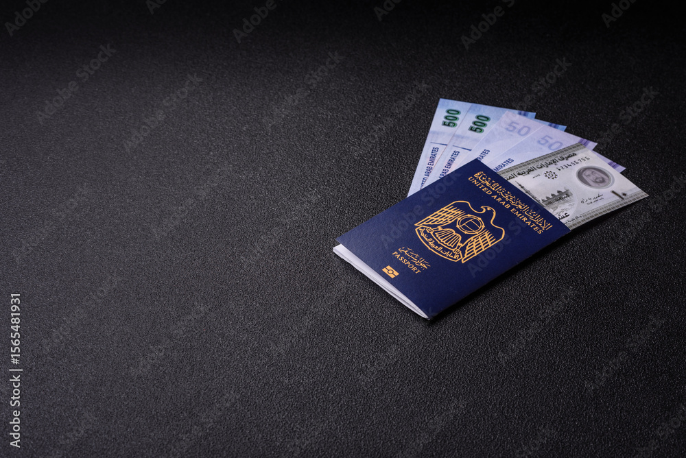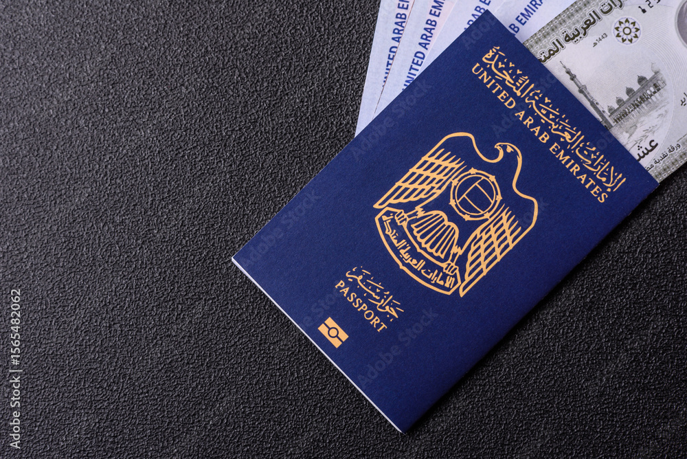 OAE passport for travelling, flying and doing business. Arabic document, id