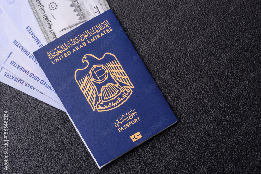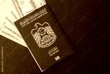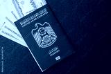 OAE passport for travelling, flying and doing business. Arabic document, id