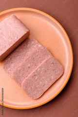 Food, meat, ham sliced in slices for the festive table. Spiced ham