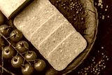 Food, meat, ham sliced in slices for the festive table. Spiced ham