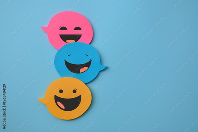colorful speech bubbles with smiles, a concept of fun communication and correspondence