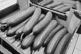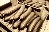 Fresh green cucumbers in cardboard boxes. Organic vegetables displayed at local market. Healthy food directly from farm. Natural produce arranged in rows. Summer harvest of juicy green cucumbers.