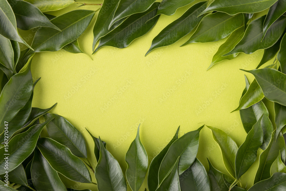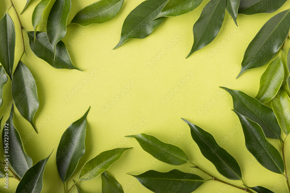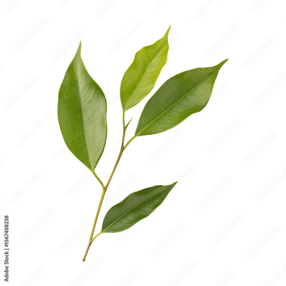 Fresh green ficus benjamina leaves branch isolated on transparent background