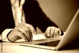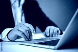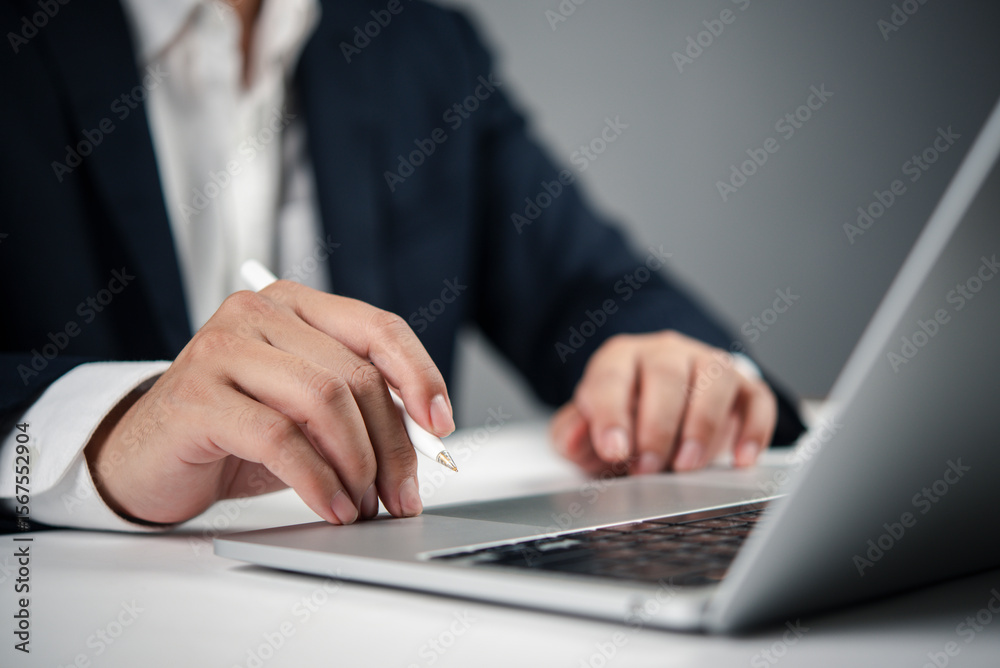 Close-up of man hands using computer, remote work, data entry, professional development, internet connection, business analytics, productivity, efficient workflow, online education.