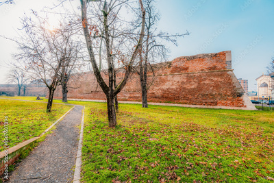Fortificated brick walls of Oradea castle. Western Transylvania in Romania. Historical cultural city in europe