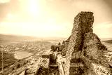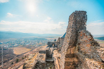 Watchtower of Boldogkő or Boldogko fortress with Boldogkővárallja village near tokaj region in Hungary
