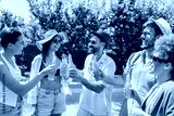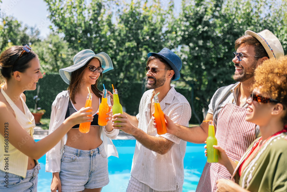 Group of Young Friends Enjoying Cocktails by the Pool