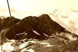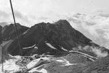 Gorgeous landscape in the mountains with snow-capped hills and clouds over the peaks of the mountains, Sochi, Krasnaya Polyana
