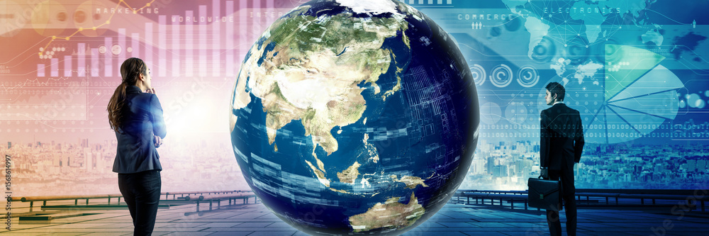地球とデジタルテクノロジー グローバルネットワーク バナー・広告向け横長ビジュアル