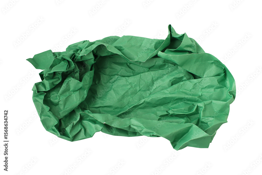 Green crumpled paper isolated on transparent background