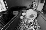 Small white hamster in a bright green cage with yellow house, bedding, and toys at home. Domestic pet animal in cozy interior.