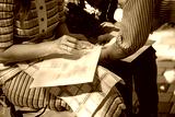 Female hands painting or drawing with soft oil pastel chalks making background of warm colors on white paper. Soft focused closeup shot