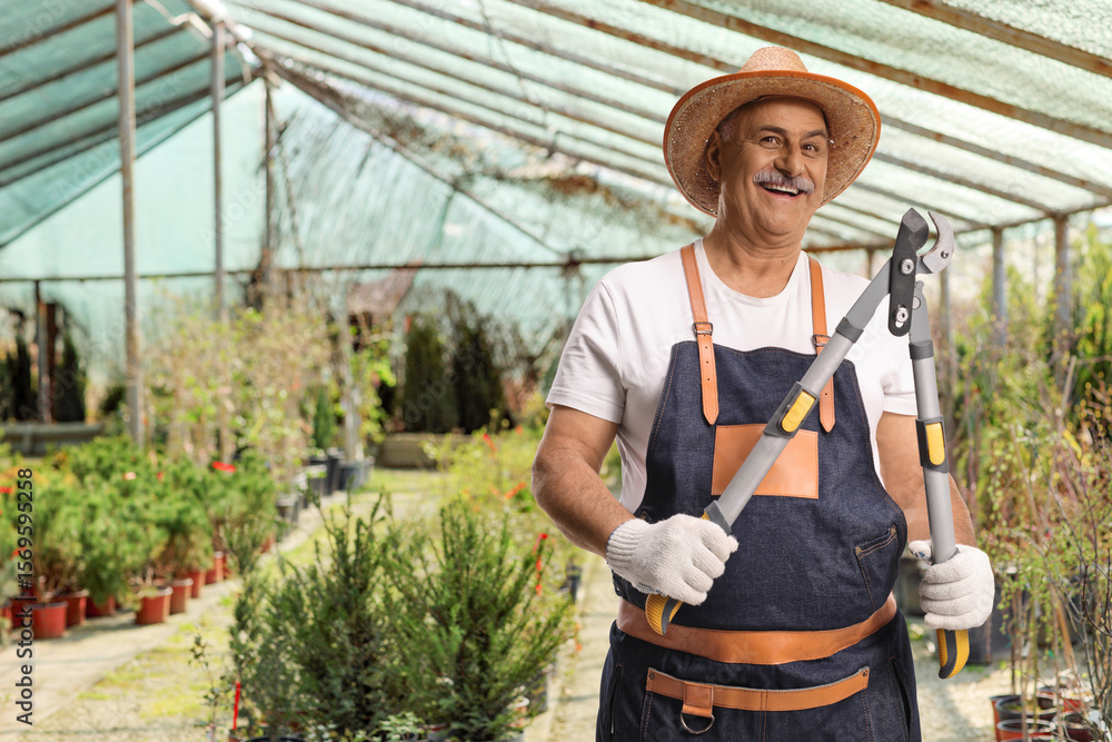 Smiling gardener holding a fence cutter