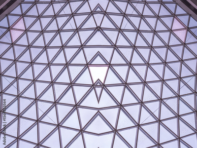 Architectural glass structure with a geometric triangular pattern, Steel glass roof wall construction transparent window with support system