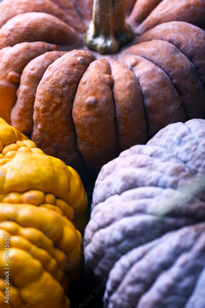 Detailed view of Black Futsu pumpkin skin in mixed tones and rough texture. Natural fall vegetable pattern perfect for abstract harvest or seasonal food themes