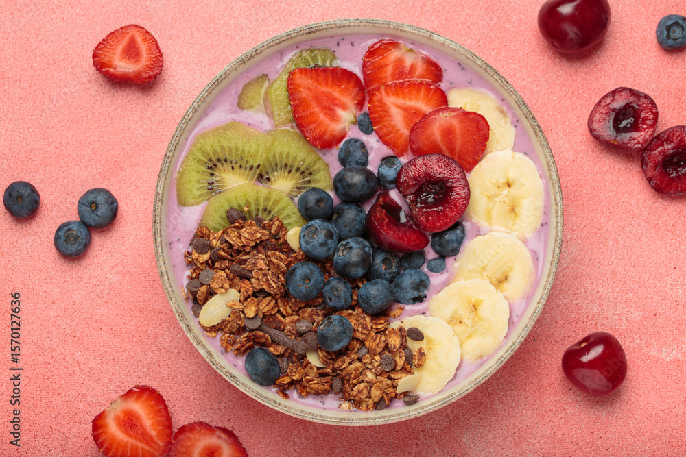Pumpkin soup with shrimp, bright sunlight, overhead composition for restaurant menu