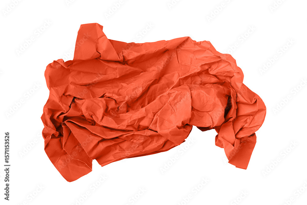 Red crumpled paper isolated on transparent background